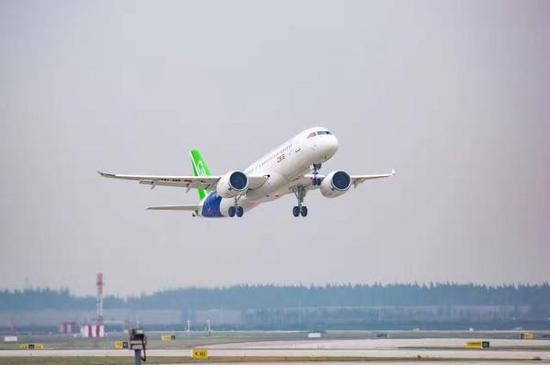 首飛放飛評(píng)審意見宣布后,民航局頒發(fā)了特許飛行證。首飛指令下達(dá),現(xiàn)場(chǎng)傳出歡呼聲。隨后,C919從上海浦東機(jī)場(chǎng)第四跑道起飛。