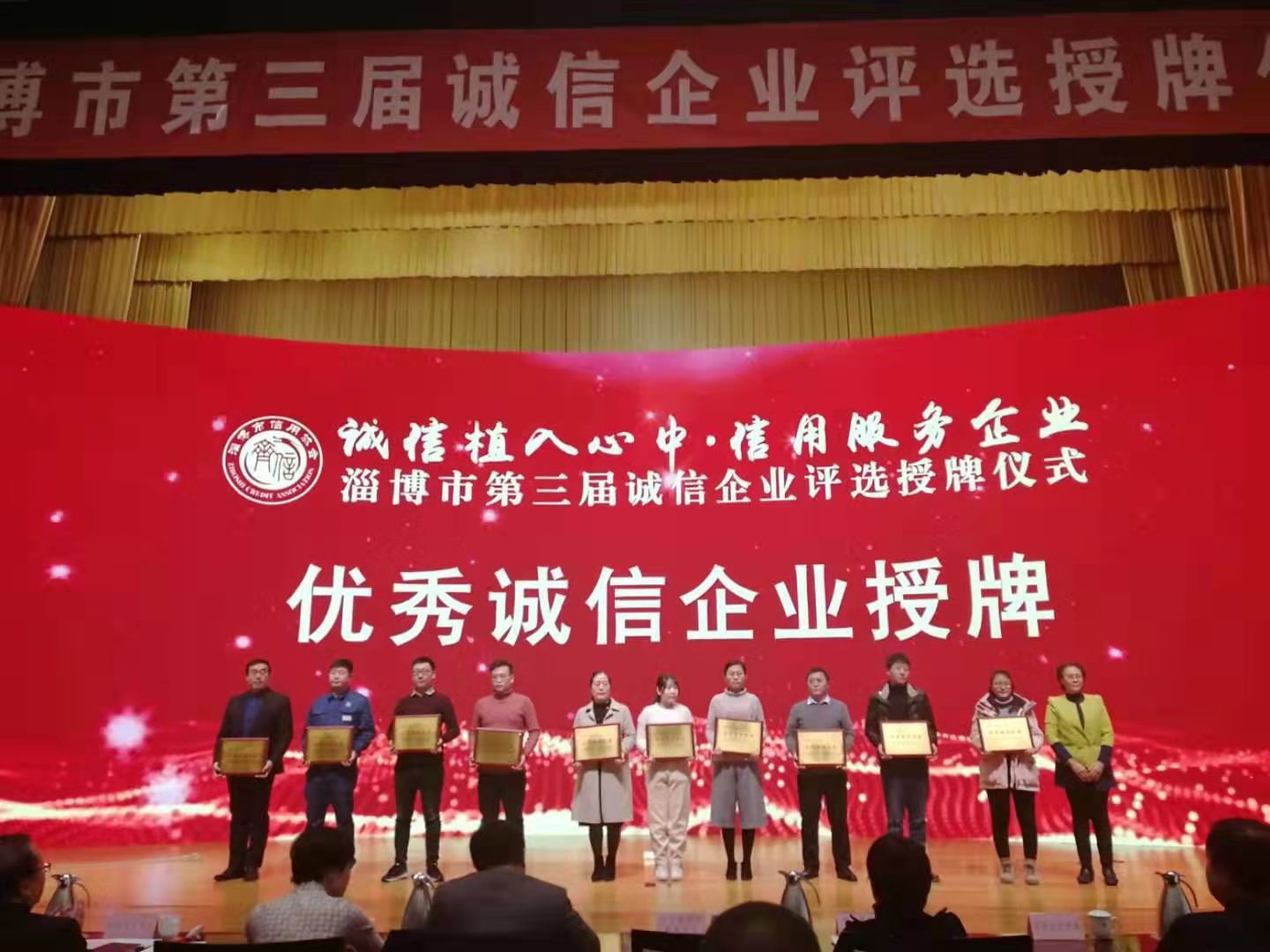 會上由山東省信用協(xié)會秘書長王正、淄博市發(fā)展和改革委員會副縣級干部王立法、淄博市信用協(xié)會會長趙玲等為獲獎企業(yè)頒獎。