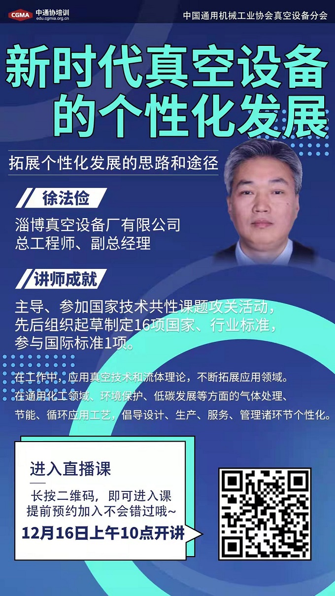 本次講座時(shí)間為:1216日上午10點(diǎn)整,專題為《新時(shí)代真空設(shè)備的個(gè)性化發(fā)展》,歡迎大家提前完成注冊,準(zhǔn)時(shí)在線收聽,交流互動。