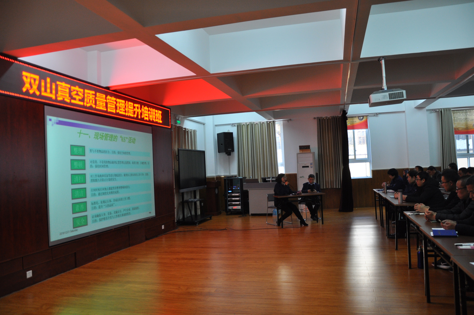 黃總在開班儀式中強(qiáng)調(diào) ——產(chǎn)品質(zhì)量是雙山真空的生命。建廠六十年來,一代又一代員工一直秉承優(yōu)良的質(zhì)量精神,鑄就了如今的雙山品牌。公司作為中國真空工業(yè)的創(chuàng)始企業(yè),作為真空行業(yè)中唯一榮獲國家質(zhì)量獎(jiǎng)的企業(yè),我們肩負(fù)著振興民族真空制造業(yè)的重任。在面臨整體搬遷升級改造的節(jié)點(diǎn)上,公司全體員工一定要繼續(xù)發(fā)揚(yáng)老一輩員工的質(zhì)量精神,珍惜此次學(xué)習(xí)機(jī)會,在各自的實(shí)際工作中,嚴(yán)格按照質(zhì)量管理體系的流程用心領(lǐng)悟、用心工作,讓產(chǎn)品質(zhì)量上一個(gè)新的臺階!