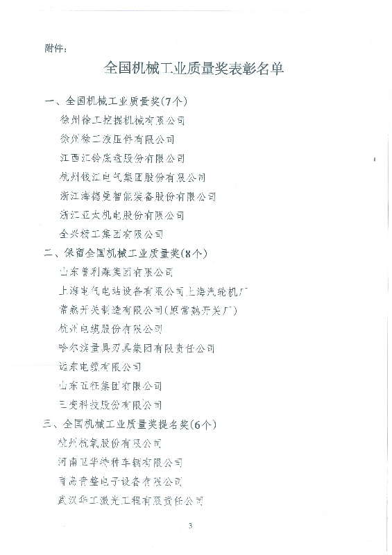 2018年12月19日至20日,中國機械工業(yè)質(zhì)量管理協(xié)會七屆五次理事擴大會議在徐州舉行。會議對在機械工業(yè)質(zhì)量管理中作出優(yōu)異成績的先進企業(yè)和優(yōu)秀個人進行了表彰,公司董事長黃毅同志被授予“全國機械工業(yè)質(zhì)量獎杰出質(zhì)量人”榮譽稱號。